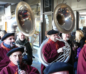 Some of the songs are traditional, some written specially for this year's festival. The musicians in each Bande play a range of instruments: trumpets, trombones,